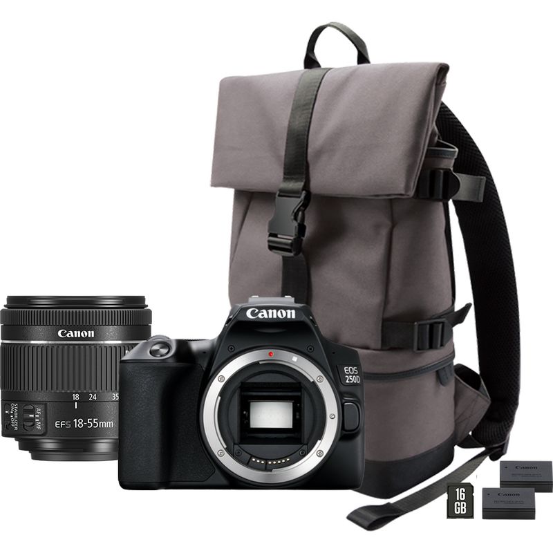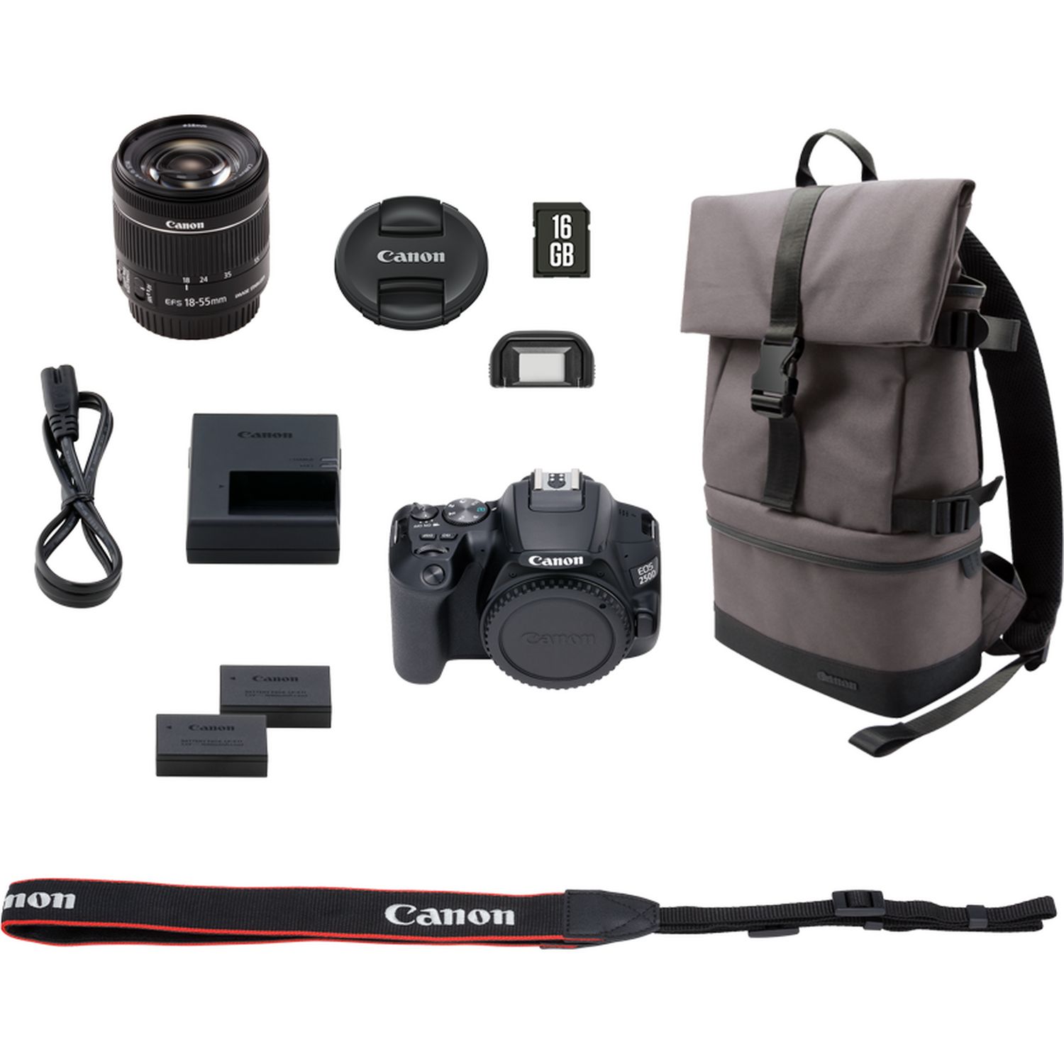 Ce reflex est idéal pour les utilisateurs de smartphone ou d'appareil photo compact souhaitant passer au stade supérieur. Facile et agréable à utiliser, l'EOS 250D est le reflex le plus léger au monde doté d'un écran orientable¹. Ce kit comprend une batterie de rechange LP-E17, pour prendre des photos plus longtemps ; l'objectif zoom léger EF-S 18-55mm f/4-5.6 IS STM, adapté à la photographie quotidienne, idéal pour les voyages ; une carte SD de 16 Go pour stocker vos photos/vidéos ; et le sac à dos pratique BP-13 pour transporter facilement votre équipement et vos affaires personnelles. L'EOS 250D est doté de la vidéo 4K, d'un capteur 24,1 millions de pixels et d'un autofocus CMOS Dual Pixel pour une qualité exceptionnelle et détaillée. Compatible Wi-Fi et Bluetooth®², vous pouvez le connecter à votre smartphone/tablette pour tout partager même en déplacement.